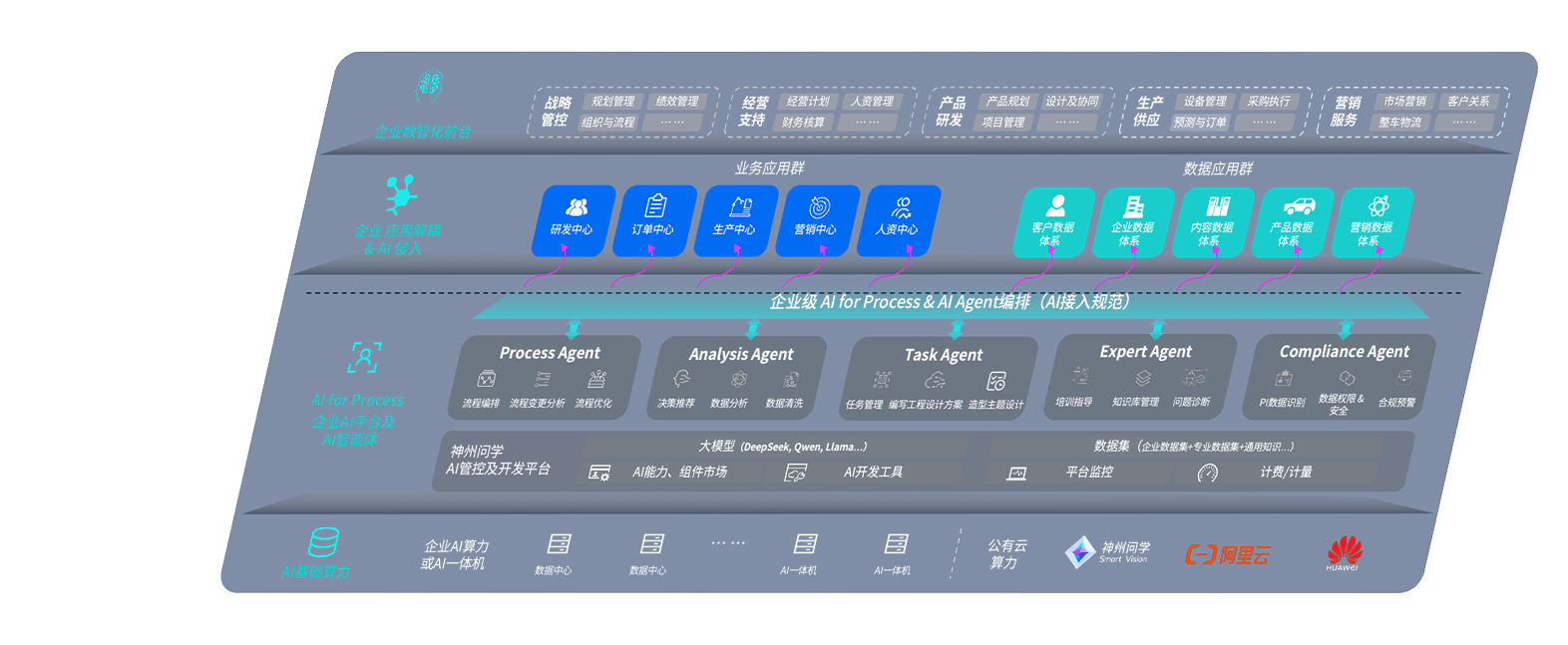 ag亚娱问学智车解决方案是一套基于AI技术的汽车行业智能化系统,,,覆盖从底层算力到顶层AI应用的全栈方案。。方案由算力层、、、、模型层和应用层组成:算力层,,,方案支持多种一体机配置,,具备云端灵活部署、、、多云适配以及动态优化计算资源的能力;模型层,,,,ag亚娱问学平台版提供了企业级AI应用一站式构建与管理平台,,,支持基于后训练强化技术的汽车企业专属模型的训练、、、、评测和运营;应用层,,,,ag亚娱问学DeepSeek版提供包括超级员工、、智能招采、、智能营销、、、、智能客服、、AI for BI等一系列解决方案,,,可助力汽车行业实现数字化转型,,,,让管理更智能、、、、响应更敏捷。。。